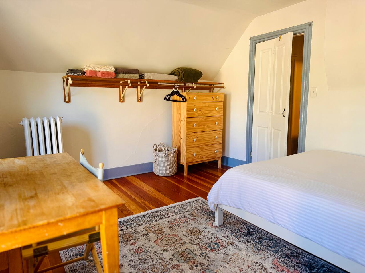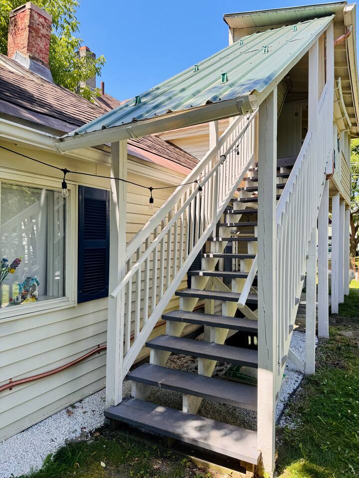 Bright, airy, and filled with Vermont charm, our one-bedroom apartment is designed for comfort. • 📺 Living Room: Spacious and inviting, with hardwood floors, a comfy futon, and a large TV loaded with Roku, Netflix, and Hulu. The dining table for two is perfect for meals, work, or just sipping a local brew. • 🛏️ Bedroom: A cozy queen bed, a dedicated work desk, a dresser, and plenty of shelf space for hanging jackets, ski gear, or your go-to flannel. • 🍽️ Kitchen: Fully stocked with full-size appliances, pots, pans, utensils, coffee maker, toaster oven, and bar seating. • 🛁 Bathroom: Bright and modern with a two-person shower, fresh towels, and essential toiletries. • 🌲 Private porch: Just off the living room, it’s a dreamy perch nestled in the canopy of a large apple tree—the perfect spot for morning coffee or evening unwinding. 🚗 Our single-track driveway is best for quick stops while loading in and out. For longer stays, there’s plenty of easy, free street parking just steps away. 🚶 Walking Distance To: 🌇 Downtown Burlington – 20 mins ⛵️ Lake Champlain Waterfront – 20 mins 🛍️ Church Street Marketplace – 15 mins 🥐 Local Cafés, Bakeries & Markets - 5 mins ✨ Ready to experience Burlington like a local? We can’t wait to host you!