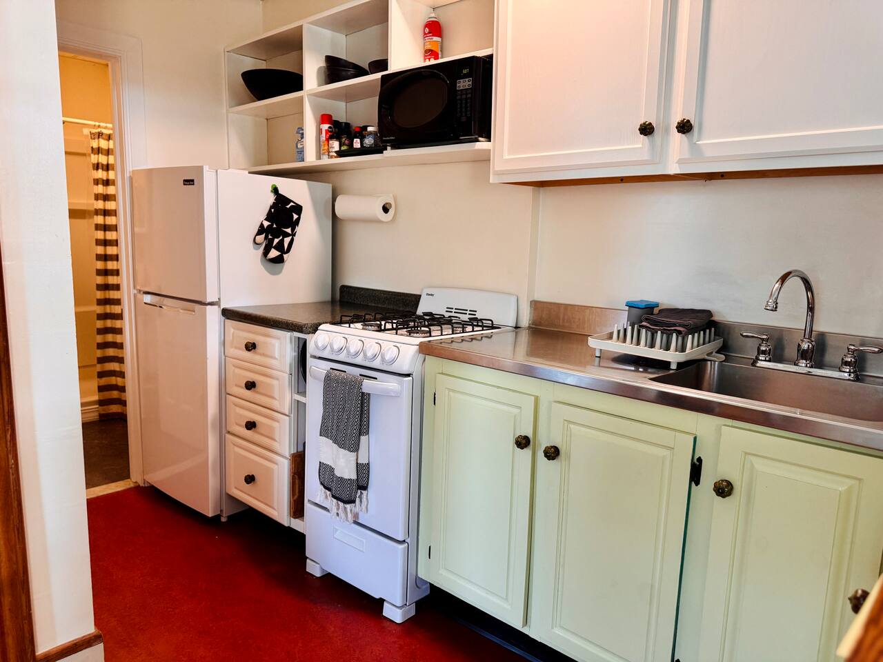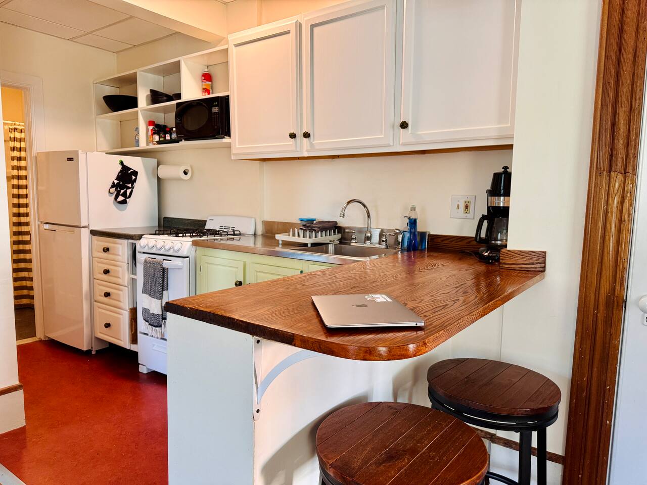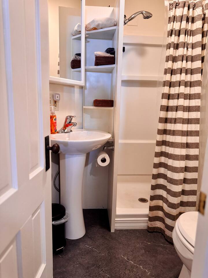 Bright, comfortable, and effortlessly cozy—this one-bedroom apartment is designed for a relaxing stay with all the essentials you need. ☕ Living & Dining • Snuggle up in the cozy living area with a TV equipped with Netflix & Hulu—perfect for unwinding after a day of adventure. • A bartop counter with stools makes for an ideal breakfast spot or workspace with your morning coffee. • Hardwood floors throughout add warmth and character. 🍳 Kitchen & Dining • A fully stocked kitchen means you can cook up anything from a quick breakfast to a full Vermont-inspired meal. • Includes full-size appliances, pots, pans, a coffee maker, toaster oven, and all the necessary utensils. 🛏 Bedroom & Bath • A comfortable queen bed, a dresser, and plenty of closet space to store your things. •A small but freshly updated bathroom with complimentary toiletries and plenty of towels. What to Know 🚂 A touch of history! The house is near the historic Shelburne train tracks—the train passes a few times a day, adding a bit of old-world charm. It’s short and never runs at night! 🚗 Location, location, location! The home is near Route 7 & Harbor Road, so you may hear some city sounds during rush hour—but in exchange, you’re within walking distance of everything! We provide a sound machine if needed. ❄️ Vermont weather ready! We have heat in the winter and a fan & white noise machine for summer nights. Why You’ll Love It Here 🍷 Walk to local wineries, coffee shops & boutiques 🌿 7 miles from Burlington, close to Lake Champlain & hiking trails 🏡 A charming space in the heart of Shelburne’s historic district Come stay at The Pink House, and let Vermont charm you one sunset, sip, and stroll at a time. ✨