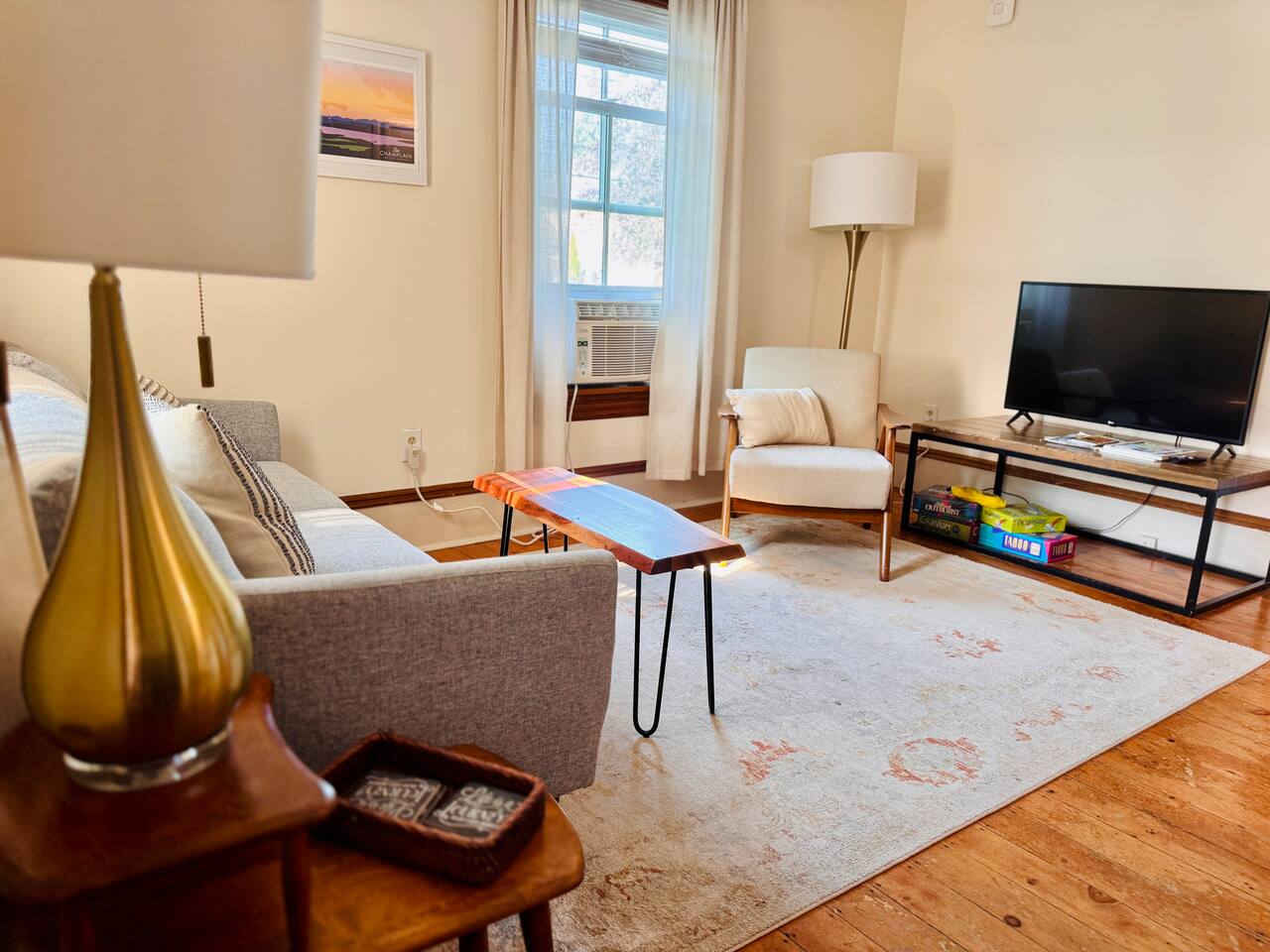 Tucked in the heart of historic downtown Shelburne, The Pink House is the perfect place to soak in Vermont’s small-town charm while staying just steps away from coffee shops, boutiques, wine bars, and some of the best local eats. Whether you’re here to explore Shelburne Farms, sip your way through vineyards and breweries, or take a short drive to Burlington, this bright and effortlessly cozy one-bedroom apartment is designed for a relaxing stay with all the essentials you need.
